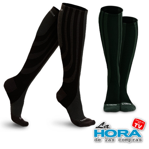 Las Medias de Compresión Sankom proveen un alivio inmediato para la pesadez de las piernas con solo ponértelas. Son los primeros calcetines clínicamente comprobados que mejoran la circulación y previenen el estancamiento de la sangre.