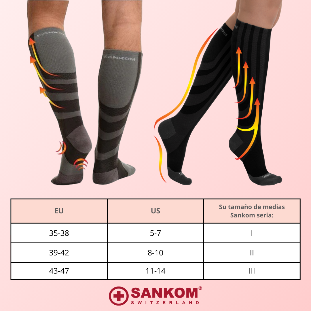 Las medias Sankom son las primeras en el mundo que está clínicamente comprobado que mejoran la circulación y previenen el estancamiento de la sangre.