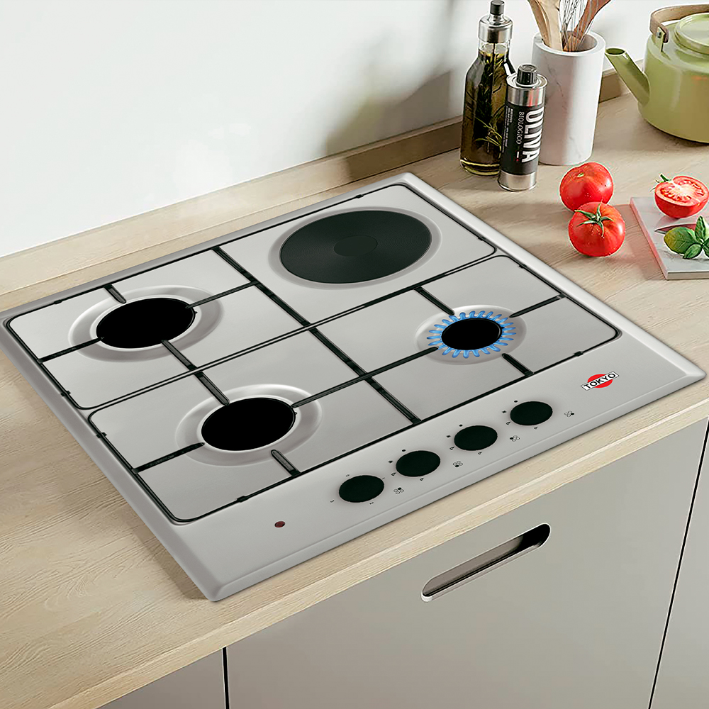 * POTENCIA 1000W. * 4 HORNALLAS (3 A GAS Y 1 ELéCTRICA). * 3 TAMAñOS DE HORNALLA. * ENCENDIDO ELéCTRICO. * 3 A GAS. MEDIDAS DEL PRODUCTO. * ANCHO 58 CM. * ALTURA 9 CM. * PROFUNDIDAD 51 CM. * MEDIDAS (BASE). * ANCHO 56 CM * PROFUNDIDAD. 49 CM. IMáGENES MERAMENTE ILUSTRATIVAS. IMáGENES E INFORMACIóN SUJETAS A CAMBIOS SIN PREVIO AVISO.