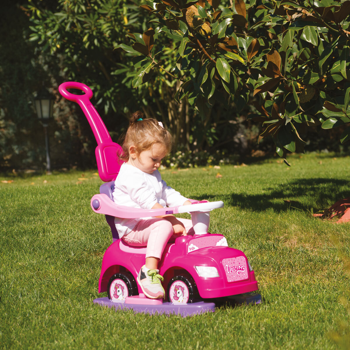 Hay diversión y funcionalidad infinitas en este auto Walk and Ride 4 en 1 con detalle de unicornio. Ya sea que quiera caminar, montar en bicicleta, mecerse o conducir, este compañero es versátil para las necesidades siempre cambiantes de su hijo en crecimiento y lo hace con estilo...