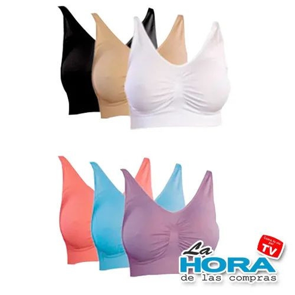 El sujetador Comfortisse brinda comodidad total gracias a su diseño sin costuras, sin aros ni broches. Se adapta a tu cuerpo y realza tu figura con suavidad. ¡Incluye 3 unidades!