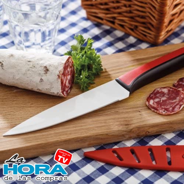 Con los cuchillos Ceracraft tendrás un filo incomparable, que te va a ayudar notablemente en la cocina. Son fabricados en acero inoxidable, con revestimiento de cerámica. No transfiere olores ni sabores a la comida. Incluye 3 cuchillos de 9, 11, 15 cm, con sus protecciones individuales.