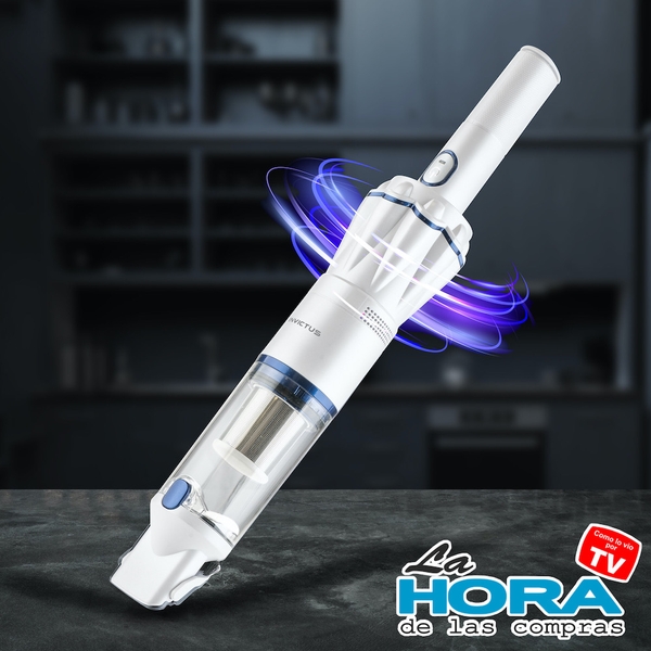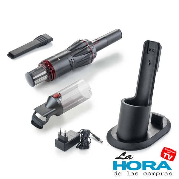 Aspiradora de mano compacta, inalámbrica y ligera, con un motor de alto rendimiento. Con 2,5 veces más de succión y solo 0,5 kg de peso total, lo que hace que sea extra liviana al usar. Vaciado del depósito de polvo con solo pulsar un botón, sin bolsas y ultra higiénico.