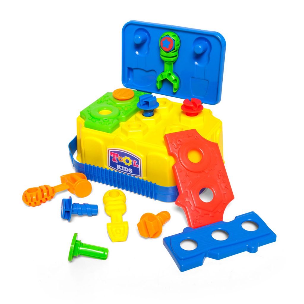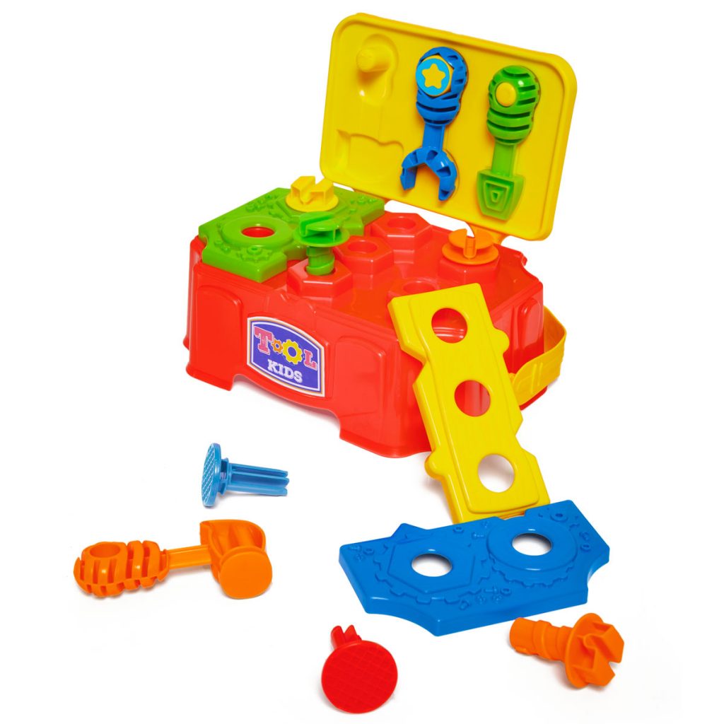 Para llevar a cualquier parte y montar un mini banco de trabajo donde quieras. Colorido y equipado con muchas herramientas y accesorios. ¡El juego será montar y desmontar, atornillar y aflojar tornillos y todo lo que tu imaginación quiera!Contiene: