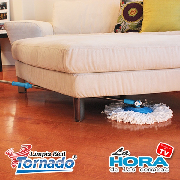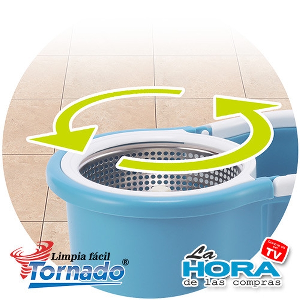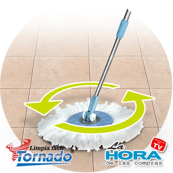 La Limpia fácil Tornado es la revolucionaria fregona que gira 360 grados. Con su cabezal giratorio y sus fibras ultra absorbentes, usted se asegurará de que sus pisos queden libres de suciedad y bacterias sin dañarlos. Es ideal para que sus pisos brillen más que nunca.