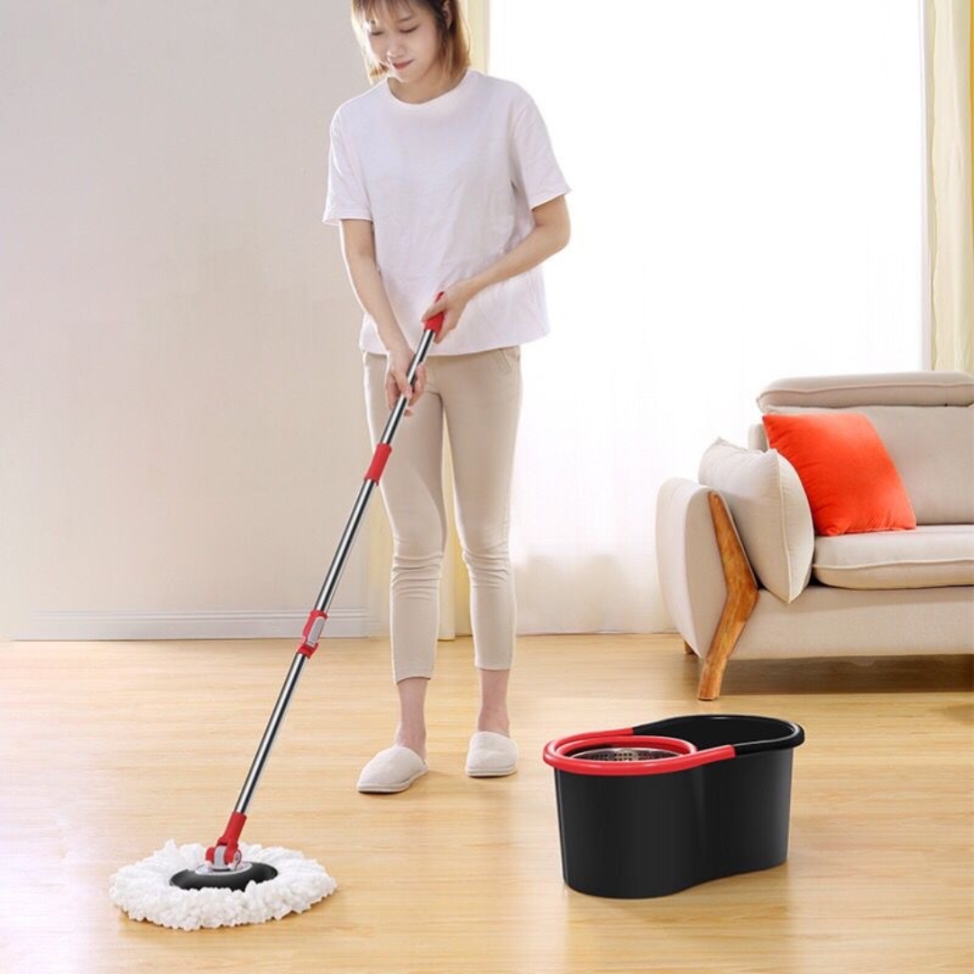 Centrifugado a bombeo manual, solo presionando el mango en la cesta logrará eliminar el exceso de agua del paño para volver a utilizarlo. Limpia y Pule el piso. Hace el trabajo de limpieza del hogar mucho más fácil.