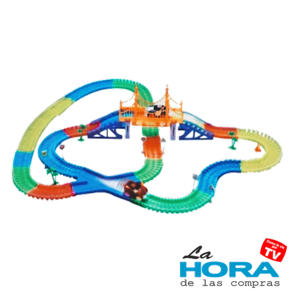 Increíble pista de carreras que se puede doblar, flexionar y guardar compactamente. ¡Brillan en la oscuridad y te aseguran la diversión durante horas!