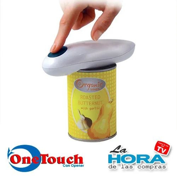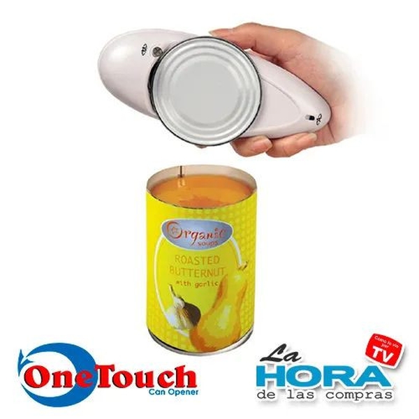 El Abrelatas Automático One Touch es la solución para ahorrar tiempo en la cocina. Basta con sólo posicionarlo en la lata que desea abrir y apretar el botón una vez. One Touch cortará el borde por completo, y podrá retirar la tapa con sin esfuerzo gracias a sus imanes integrados.