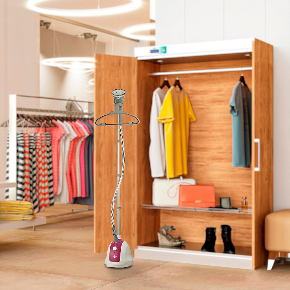 * CAPACIDAD DEL TANQUE 1,5 LITROS. * POTENCIA 1785W. * 3 NIVELES DE INTENSIDAD DE VAPOR. * CON PERCHA PARA ROPA. IMAGEN ILUSTRATIVA.