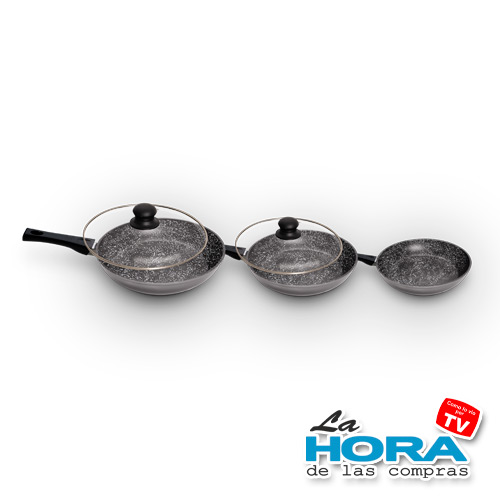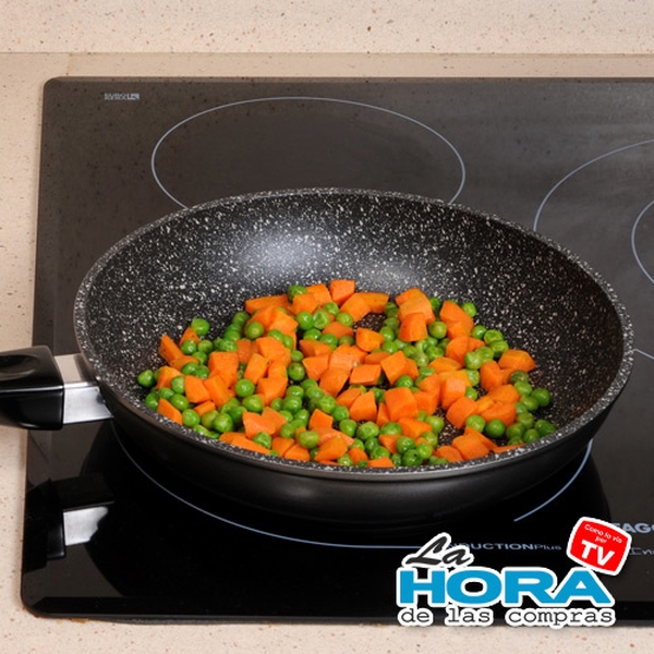 La innovadora tecnologia de las sartenes "Stonewell" incorpora lo mejor de múltiples utensilios de cocina en una sola sartén! Su base de aluminio se calienta rápidamente y de manera uniforme, esto combinado con la magnifica capacidad de retención de calor de la piedra asegura que sus comidas están cocinadas a la perfección.