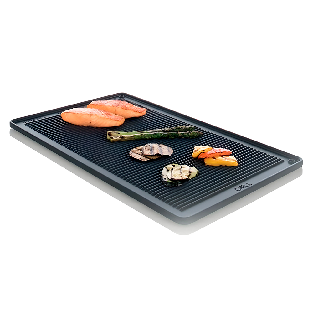 * EL REVESTIMIENTO ANTIADHERENTE TRILAX DE TRES CAPAS FAVORECE EL DORADO Y ES PERFECTO PARA EL USO A TEMPERATURAS DE HASTA 300°C. * PARA PREPARAR PIZZAS CASERAS O CON MASA PREPARADA, MASAS PARA TARTAS O PANES PLANOS. * LA PARTE TRASERA ES IDEAL PARA COCINAR FILETES, VERDURA O PESCADO A LA PARRILLA.. * CON PROPIEDADES ANTIADHERENTES, EXTREMA RESISTENCIA Y LARGA DURACIóN. * PARRILLA DE ALTA TERMOCONDUCTIVIDAD. DIMENSIONES DEL PRODUCTO * LARGO 530 MM. * ANCHO 325 MM. IMáGENES MERAMENTE ILUSTRATIVAS. IMáGENES E INFORMACIóN SUJETAS A CAMBIOS SIN PREVIO AVISO.