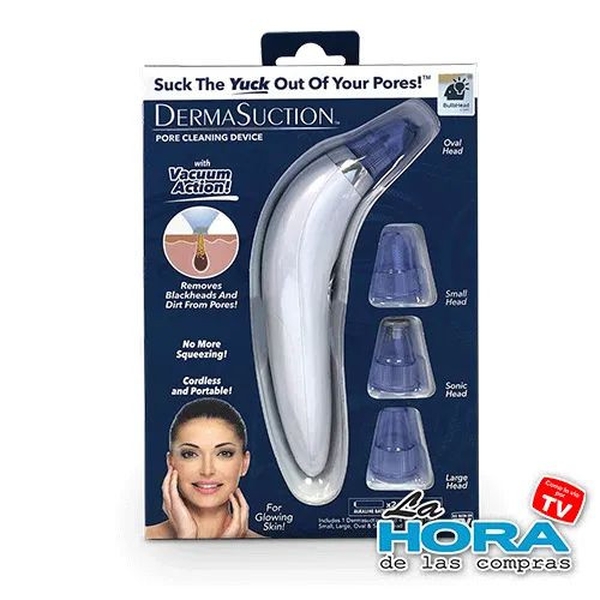 Con DermaSuction, la mala limpieza de la piel del rostro quedó en el pasado. La potente pero suave acción de succión que se encuentra dentro de DermaSuction absorbe la grasa, puntos negros, espinillas, polvo y suciedad de la piel.