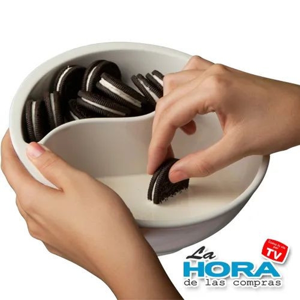 ¡Desliza los cereales por el agujero y listo! Caerán automáticamente sobre la leche y no se ablandaran. Cada bocado de cereal sera igual de crujiente que el primero.