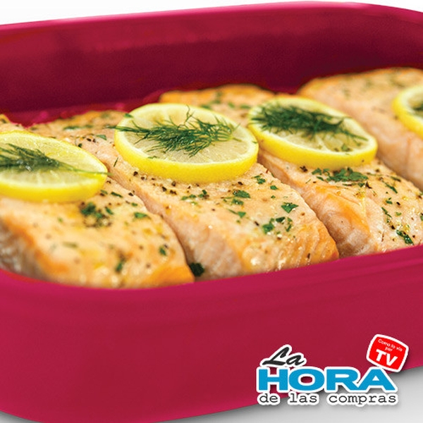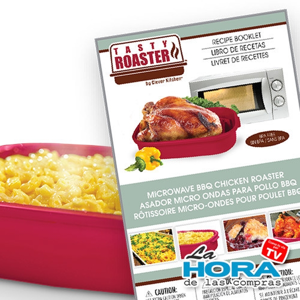 El Tasty Roaster es un recipiente de coccion para microondas que le permitirá preparar sabrosos platos como pollo asado, vegetales al vapor y deliciosos postres como fudge sin encender el horno. Actúa como un horno convencional, pero es capaz de cocinar sus alimentos a velocidad de microondas.