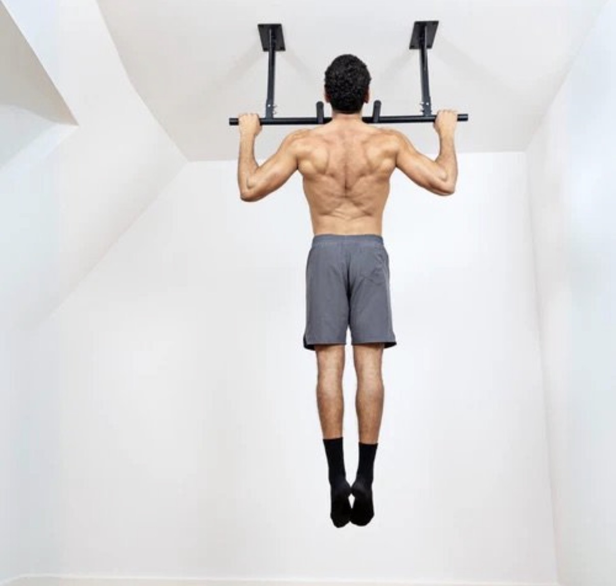 Versátil, cómoda y portátil, esta barra de dominadas te permite trabajar espalda, brazos, pecho y abdominales usando solo tu peso corporal. Ideal para entrenar en casa.